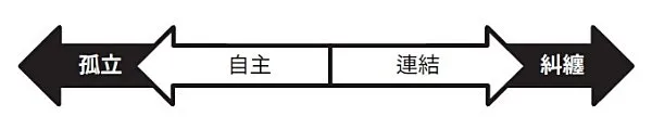 在《勇敢去爱》一书中,亚历山德拉.H.所罗门认为健康的界线应该是个平衡点,你既可以与人相连、也可以与人分开,既可以维持你自己的能量与自我意识,也能让你的伴侣维持他们所需的能量。